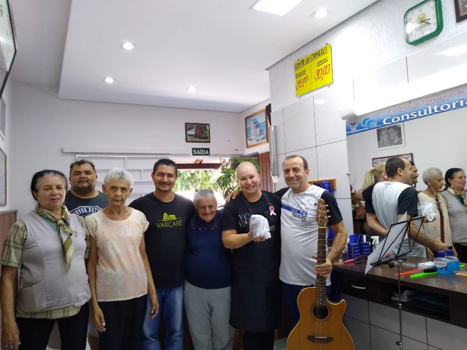 Os nossos idosos acompanhados da Assistente Social, Márcia, do educador musical Pedro e do vicentino Civaldo visitam e homenageiam os nossos colaboradores.